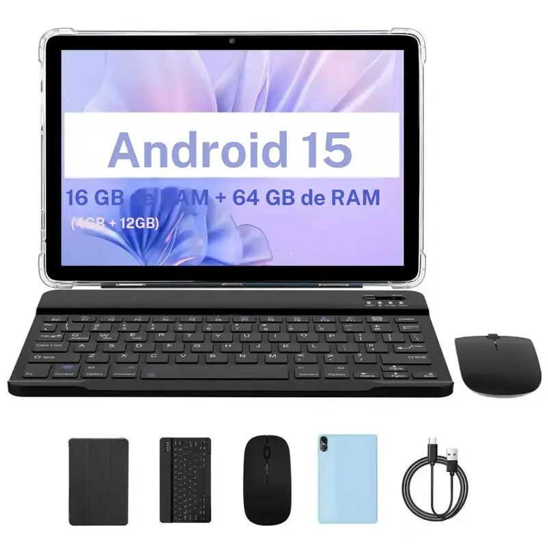 Tableta Android PRITOM 15 de 10,1 inch, 16 GB de RAM, 64 GB de ROM, con funda con teclado y bolígrafo, cámara doble, batería de 8MP, 6000mAh, regalo Ideal para la escuela y el día a día